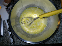 Unire ora le due farina setacciate con il lievito, il sale e il pepe e mescolate,