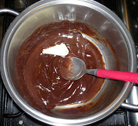 Preparate la salsa fondendo a bagno maria o a fuoco bassissimo il cioccolato con la panna e il burro.