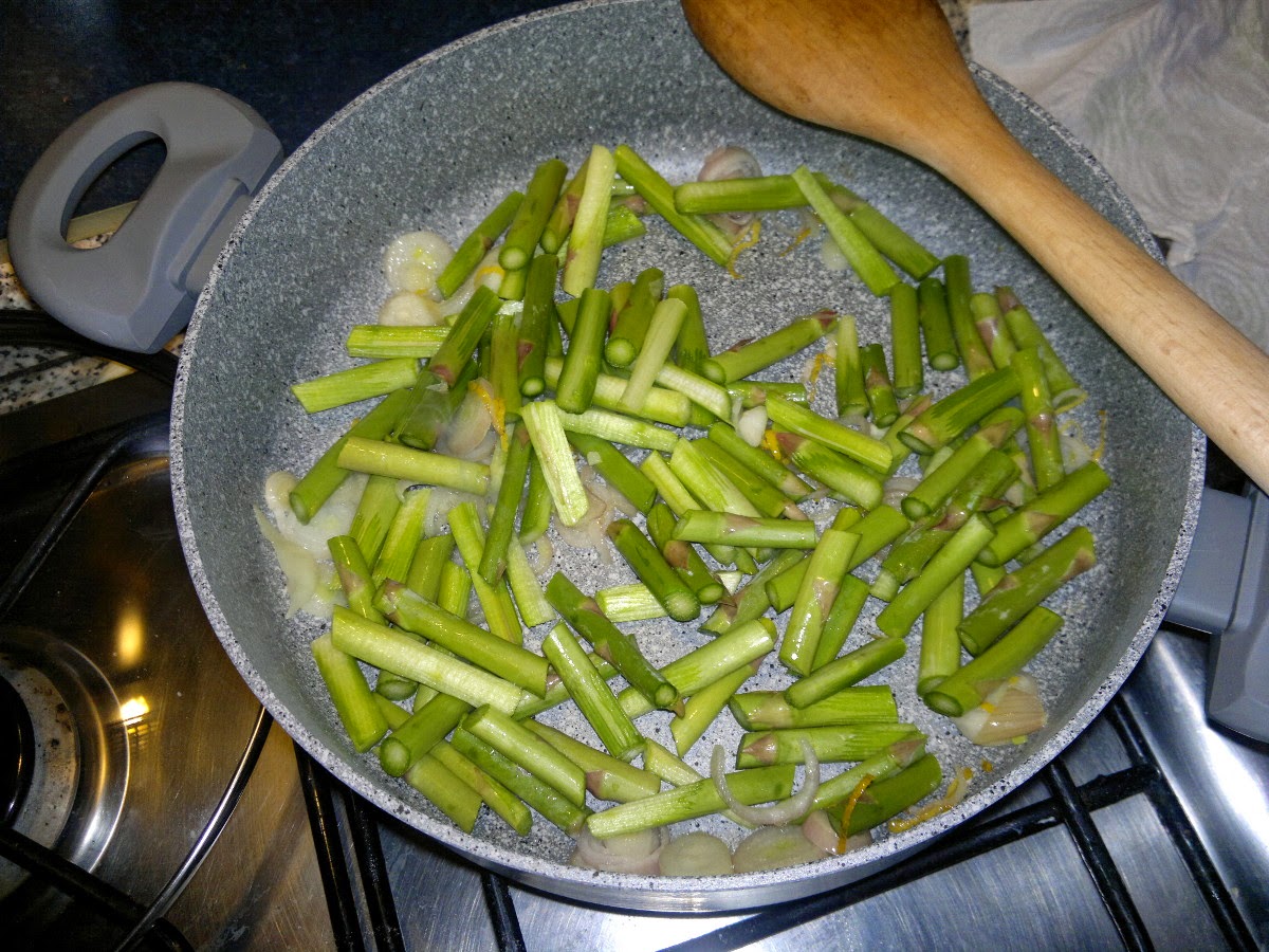 Fate cuocere circa 15 minuti, bagnandoli col succo di limone, finchè saranno quasi cotti. Aggiungete le punte tenute da parte e cuocete ancora qualche minuto.