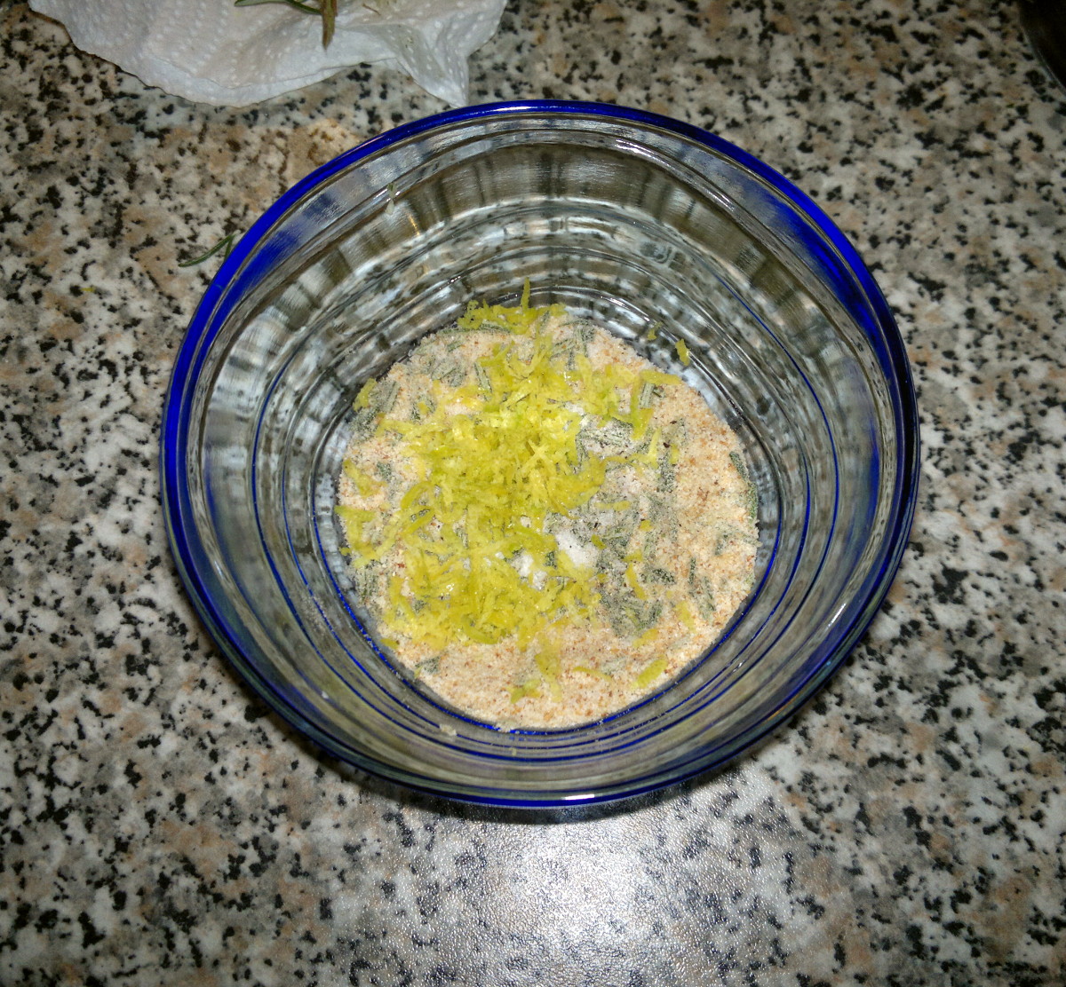 Meanwhile prepare a ground with the remaining rosemary, garlic and lemon zest, salt and pepper.
