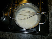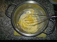 Unite a filo il latte tiepido, continuando a mescolare e mettete a cuocere su fuoco basso, unite anche il succo di limone e cuocete finchè la crema non si sarà addensata.