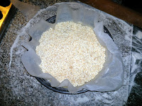 Bucherellate il fondo con una forchetta e pareggiate i bordi. Ricoprite la base con un foglio di carta forno e distribuitevi sopra dei legumi secchi, riso o gli appositi pesetti.