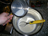 Melt gelatine with a couple of spoons of cream and add it to the chocolate mix.