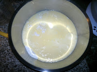 When the mix is smooth add the egg and the milk and stir again until uniform. Cover with plastic wrap and set in the fridge.