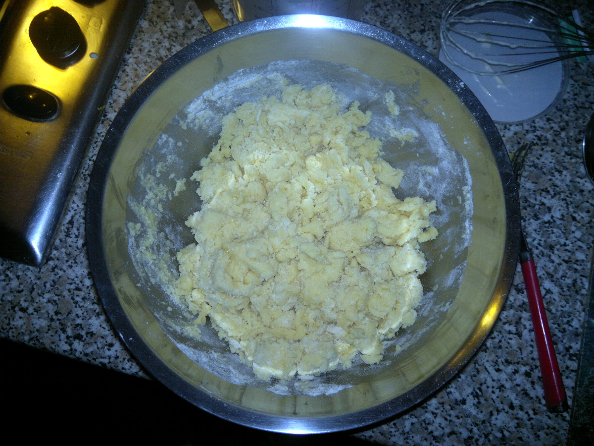 Using a fork start to knead, then use your fingers, but stop when the mixture resemble like big crumbs. The dough hasn’t to be uniform and compact.