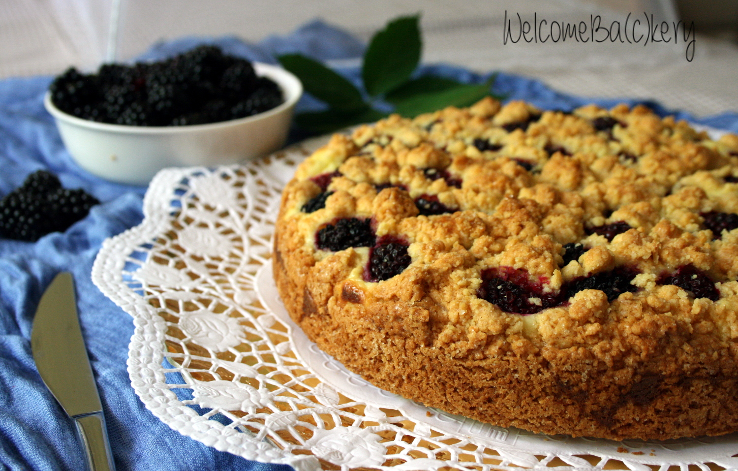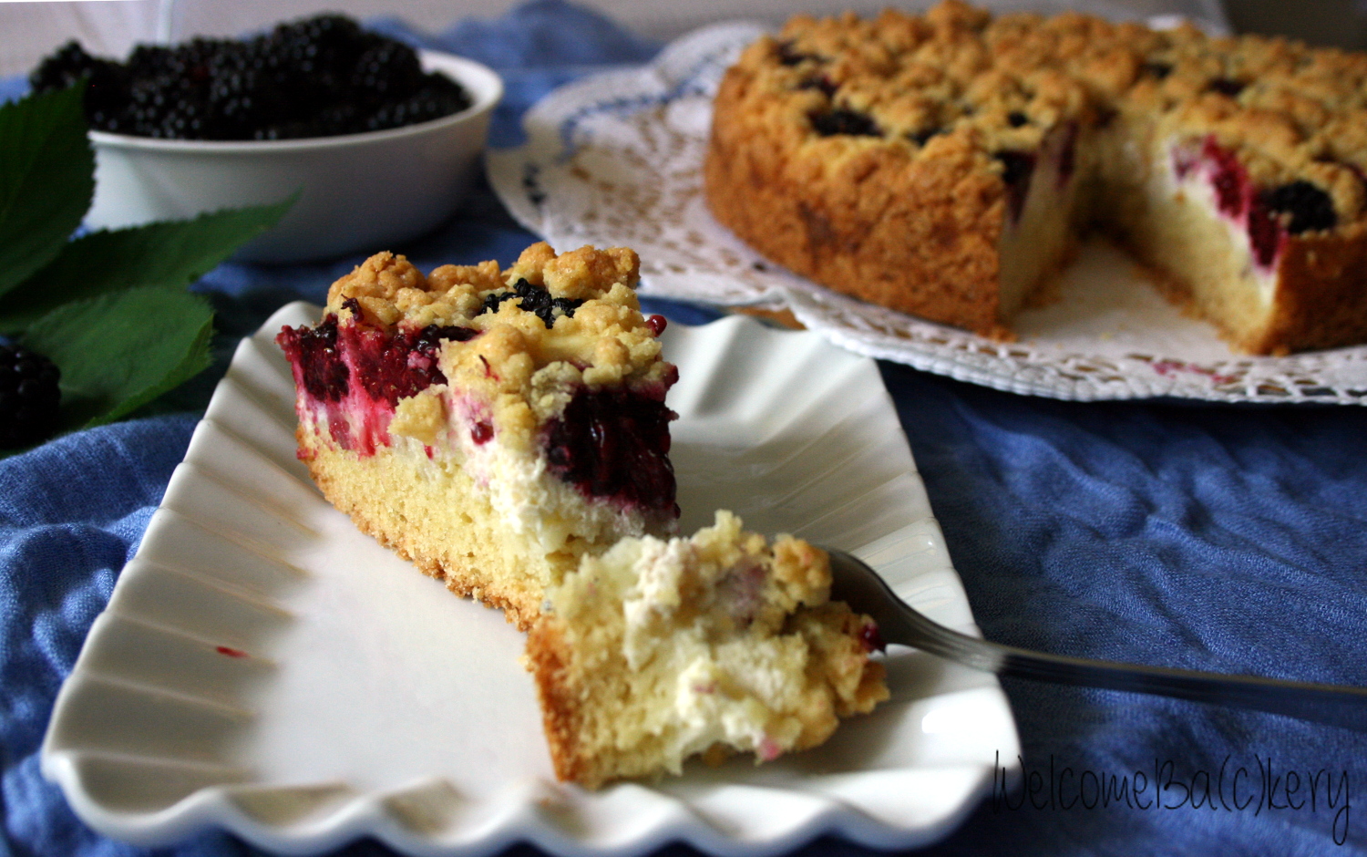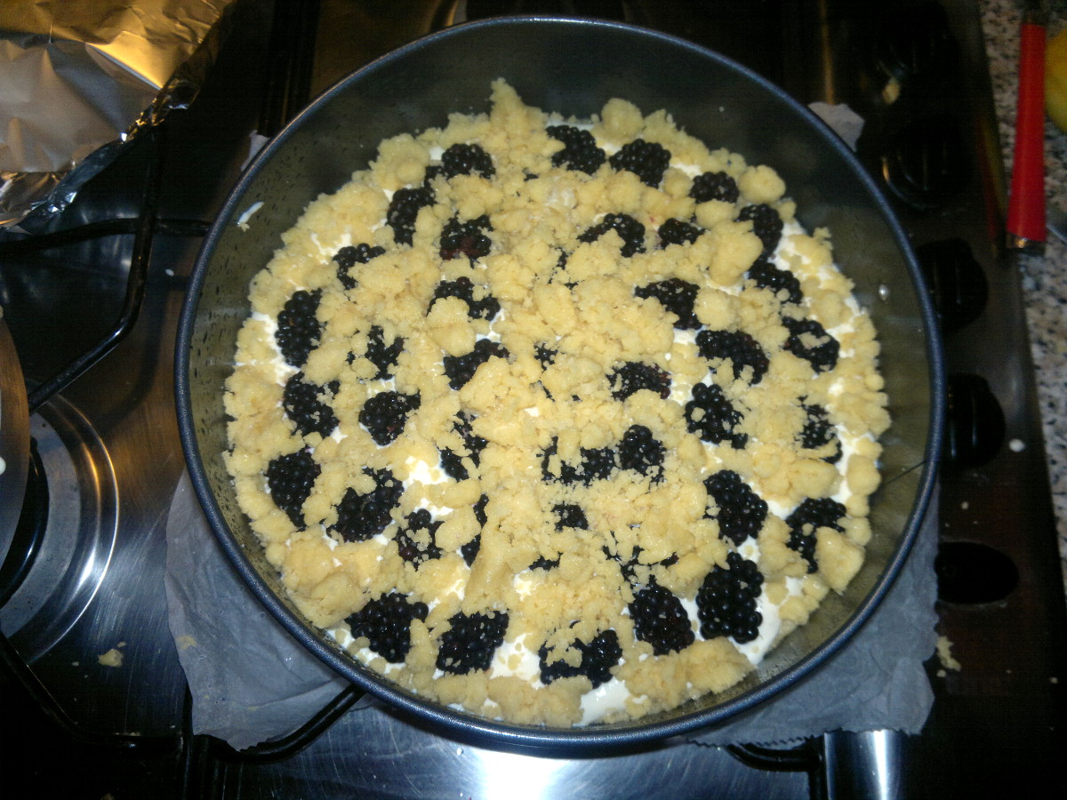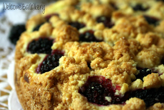 Crumb cake with blackberries and ricotta cheese
