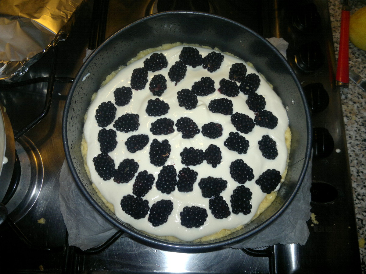 Spalmate ora la crema di ricotta e disponetevi sopra le more.