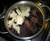 Melt the two type of chocolate with butter and maple syrup, until smooth and creamy.