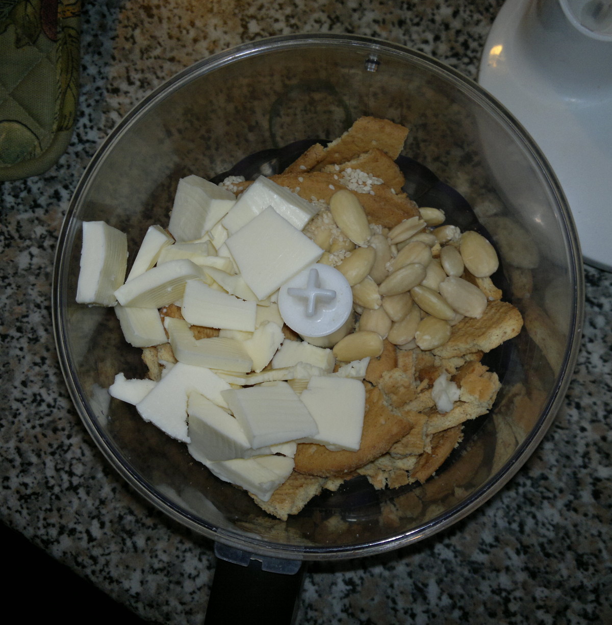 Toast the sesame seed in a little fry pan and put them in a mixer, with biscuits, butter and almonds. Blend until you’ll obtain a sandy and thin mixture.