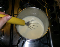 Bring to boil stirring constantly, scraping the bottom and the inside of the pot. At this point the custard will be thicken.