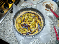 Una semplice crostata, di cui ho insaporito la frolla con farina integrale, uno strato di confettura vivacizzata dallo zenzero – che con le prugne fa una coppia perfetta – e tante prugne fresche sopra!