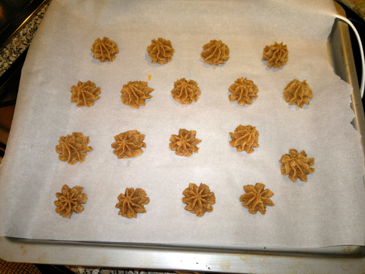 Trasferite l’impasto in una sac à posche con la bocchetta rigata e spremete delle gocce grosse come una noce, distanziate le une dalle altre un paio di centimetri.