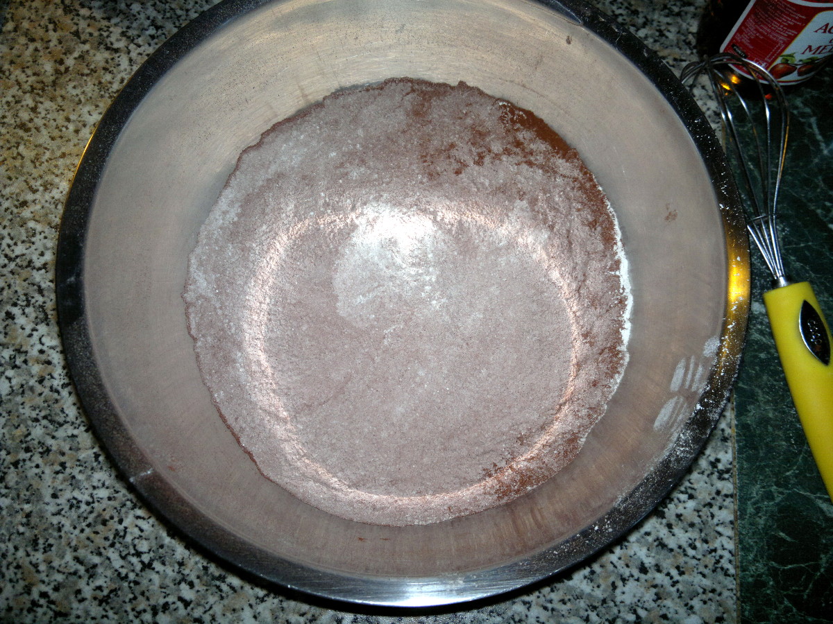 Setacciate gli ingredienti secchi e mescolateli tutti insieme in una ciotola.
