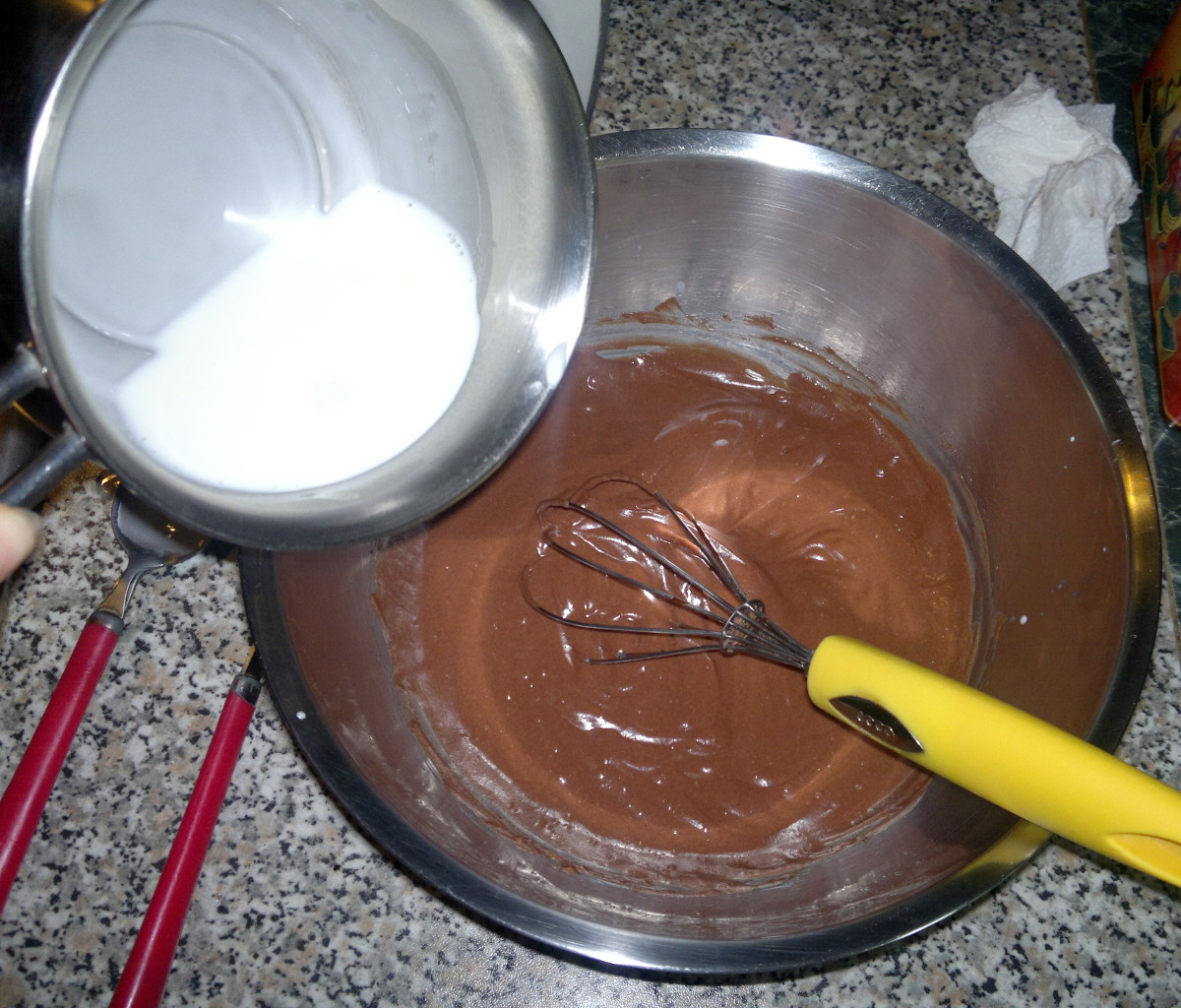 Unitela ora al composto di cioccolato, mescolando delicatamente dal basso verso l’alto per non smontare il tutto.