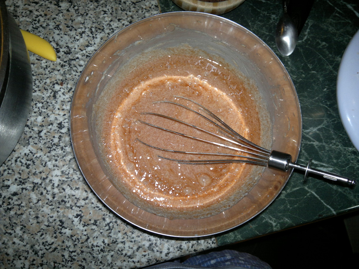 In un’altra ciotola lavorate l’uovo con lo yogurt e il latte poi unite il cioccolato fuso.