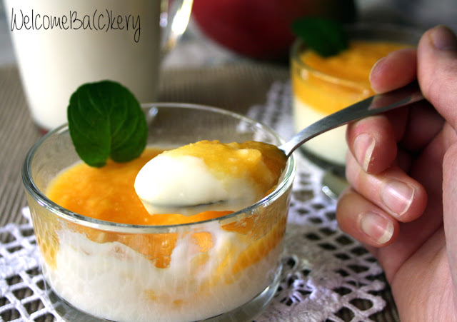Io avevo a disposizone un bel mango maturo e l’ho utilizzato per accompagnare il budino, ma sentitevi liberi di seguire i gusti e le stagioni: fragole, pesche, frutti di bosco…