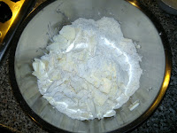 Raccogliete in una ciotola le farine e il burro ben freddo a tocchetti.