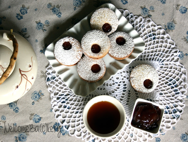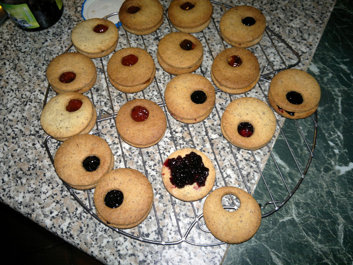 Let cool down on a wire rack, then place a little of jam over a biscuit and cover with a biscuit with the little hole.