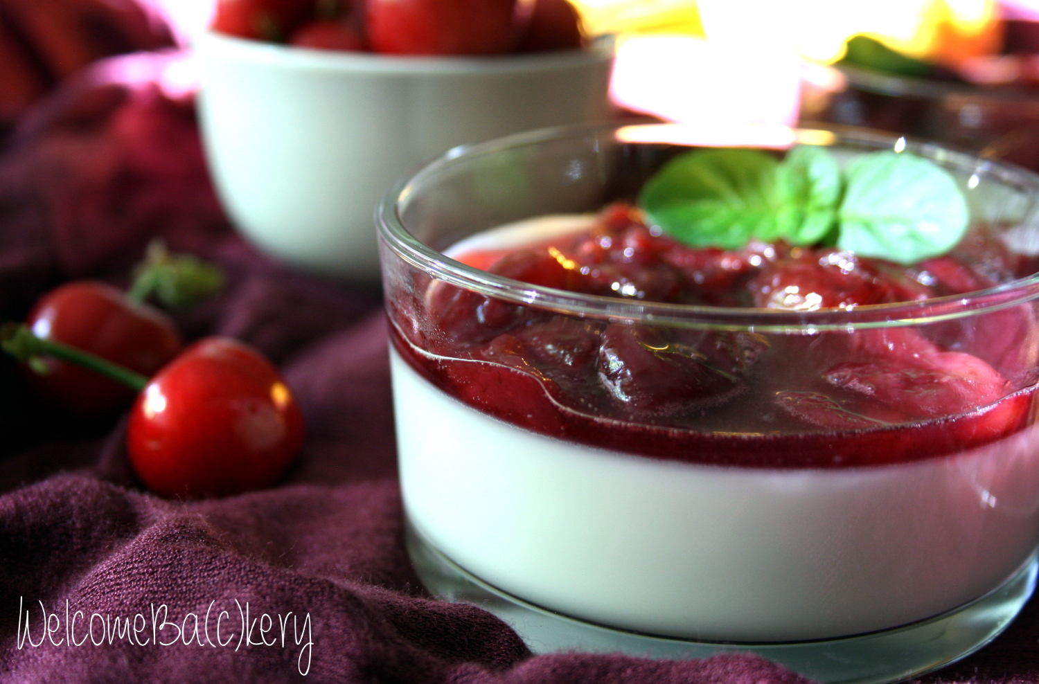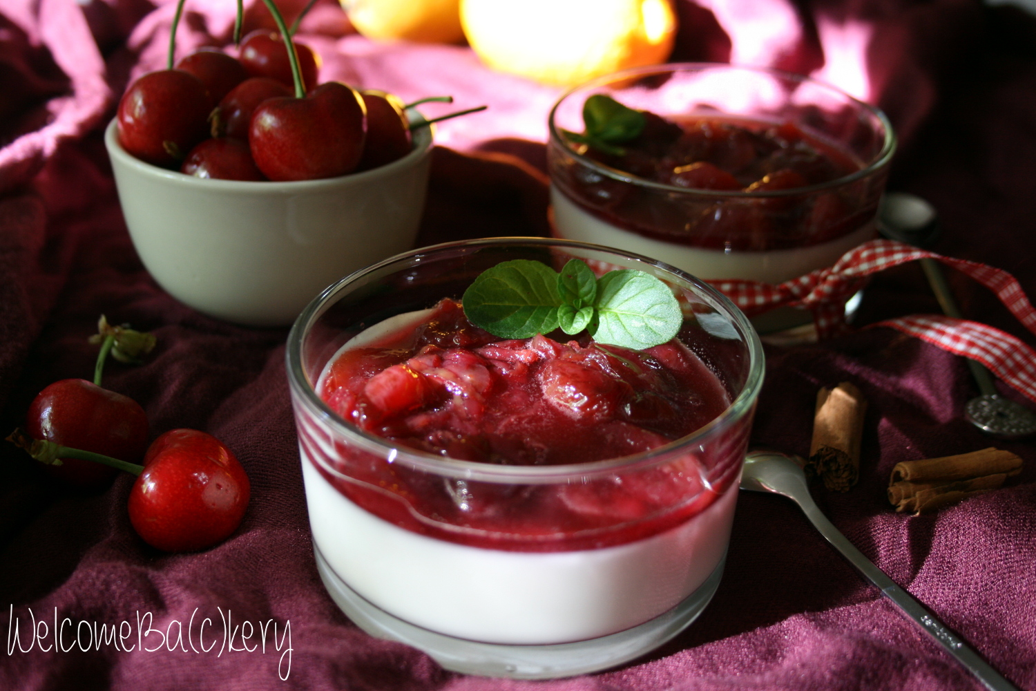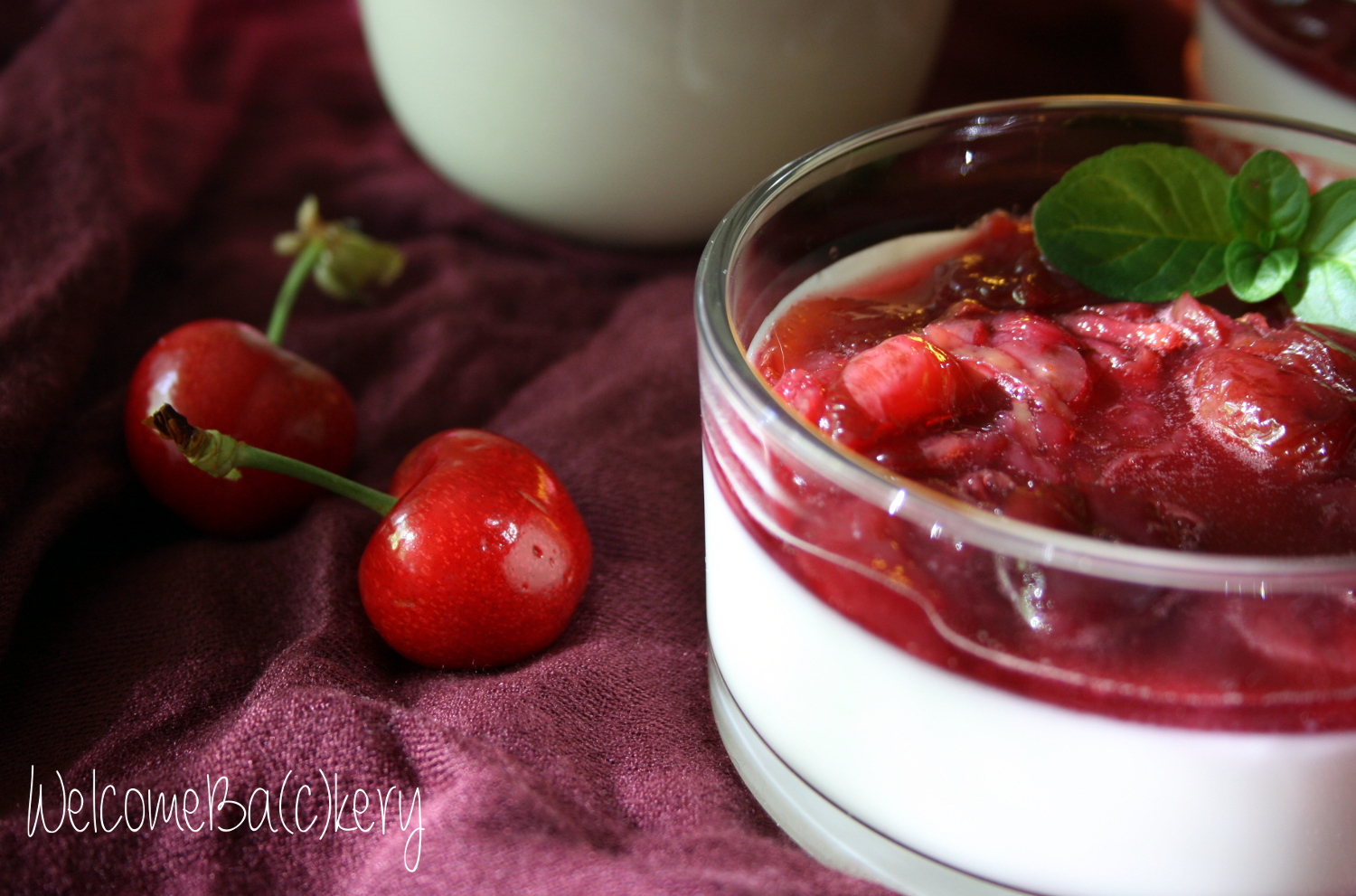 Panna cotta with red wine cherries
