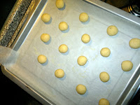 Then pinch a piece of dough (13g) and form a little ball, then place it on the baking tray covered with greaseproof paper. Go on until the dough is finished.