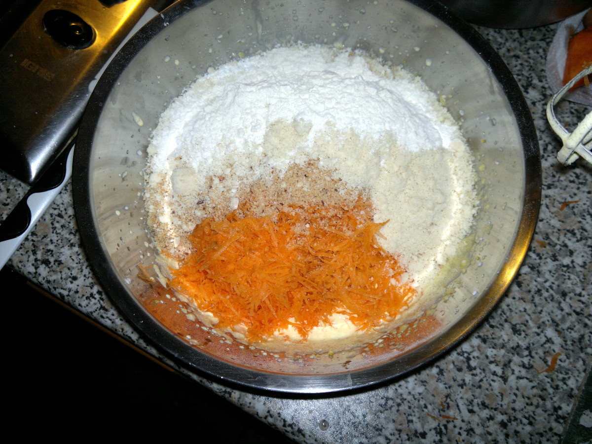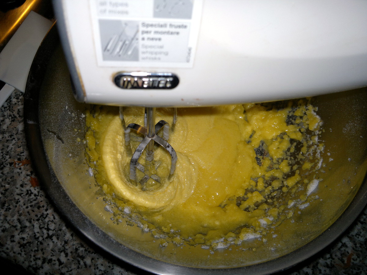 Now beat yolks with sugar until fluffy and add half lemon juice, the zests of the lemon, carrots, flour, almonds’ flour and baking. Mix lightly and add the whites, mixing gently from bottom to top.