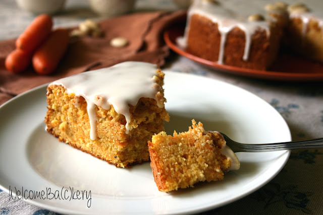 Morbida e umida, praticamente si fonde in bocca, e non parliamo del felice matrimonio tra carote e mandorle… e in più quella dannata e tentatrice crosticina della glassa…
