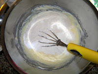 Mix ricotta with sugar. Add egg and oil and stir well again. Now add white flour, rice flour, baking powder, baking soda, salt and the chosen flavor. Mix a little and add the milk. Now stir until the batter is just homogeneous, then stop or your little cake won’t be soft.