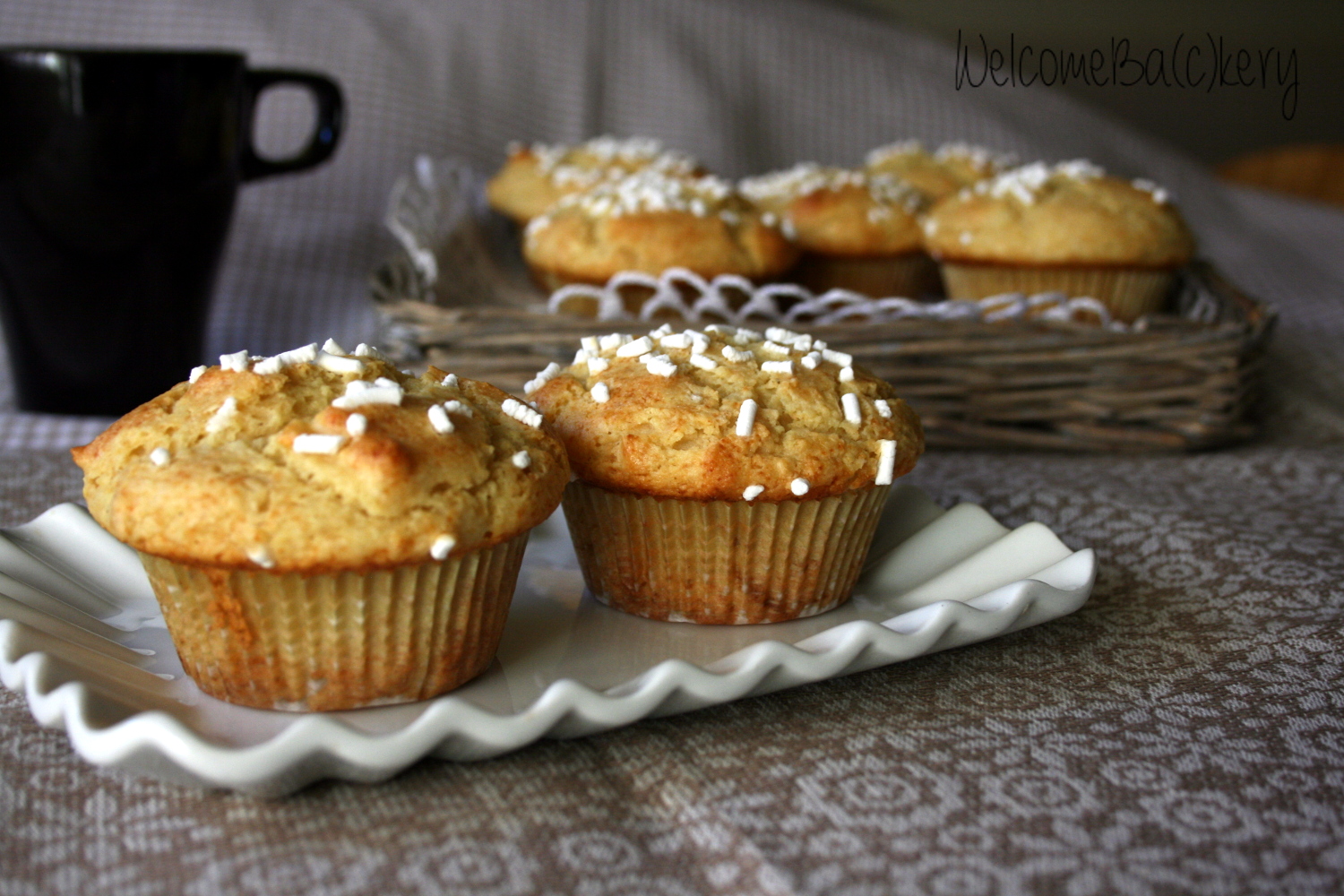 Divide the batter into the muffins pan, greased and floured, decorate with sanding sugar and bake at 180° C for 12-15 minutes. Let cool down on a wire rack.