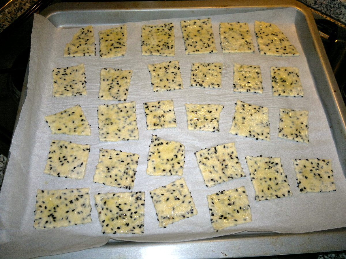 Cuocete a 200°C per circa 10-15 minuti (dipende dalla dimensione dei crackers), fate raffreddare e servite.