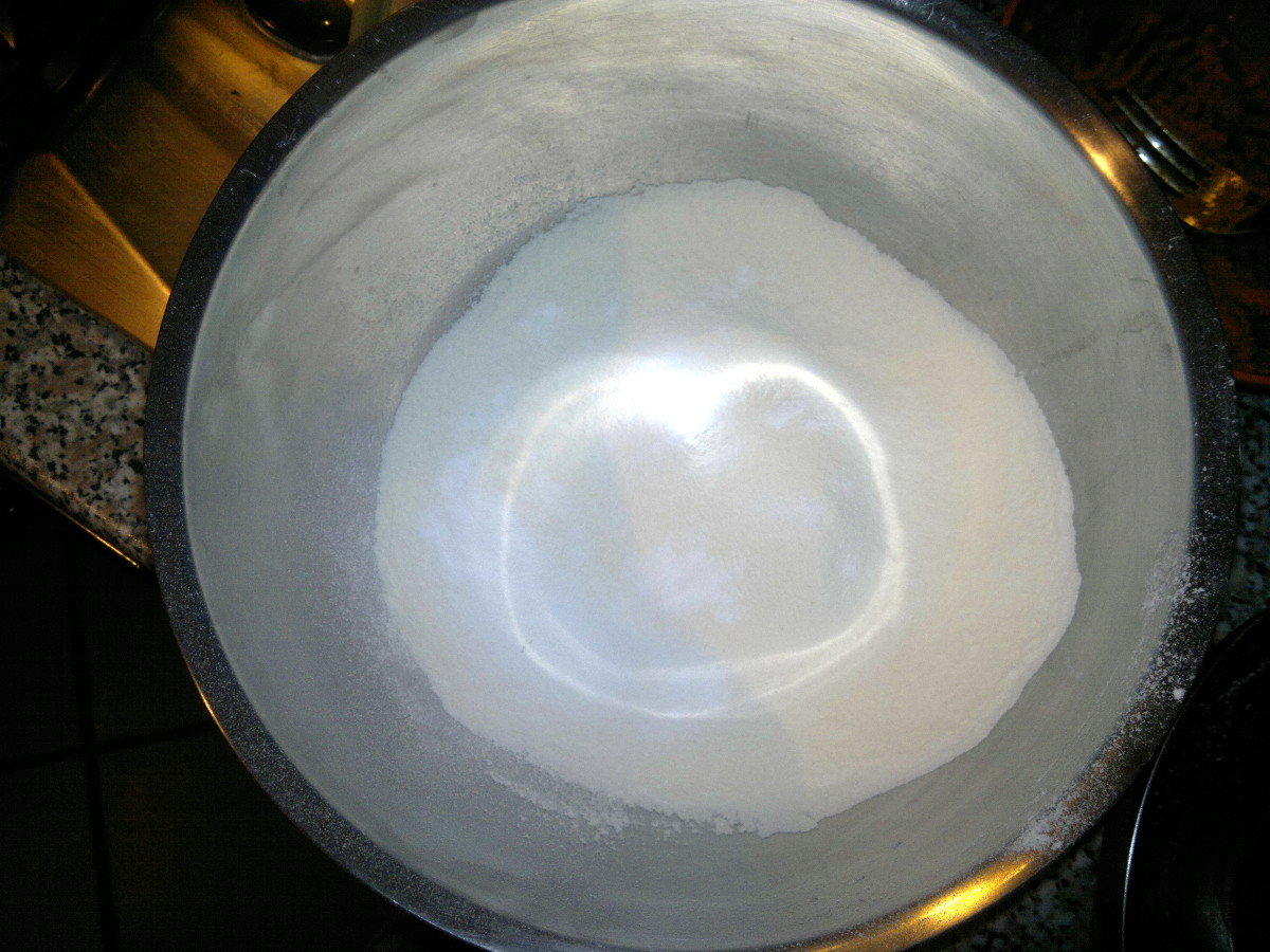 Raccogliete in una ciotola la farina setacciata con il lievito.