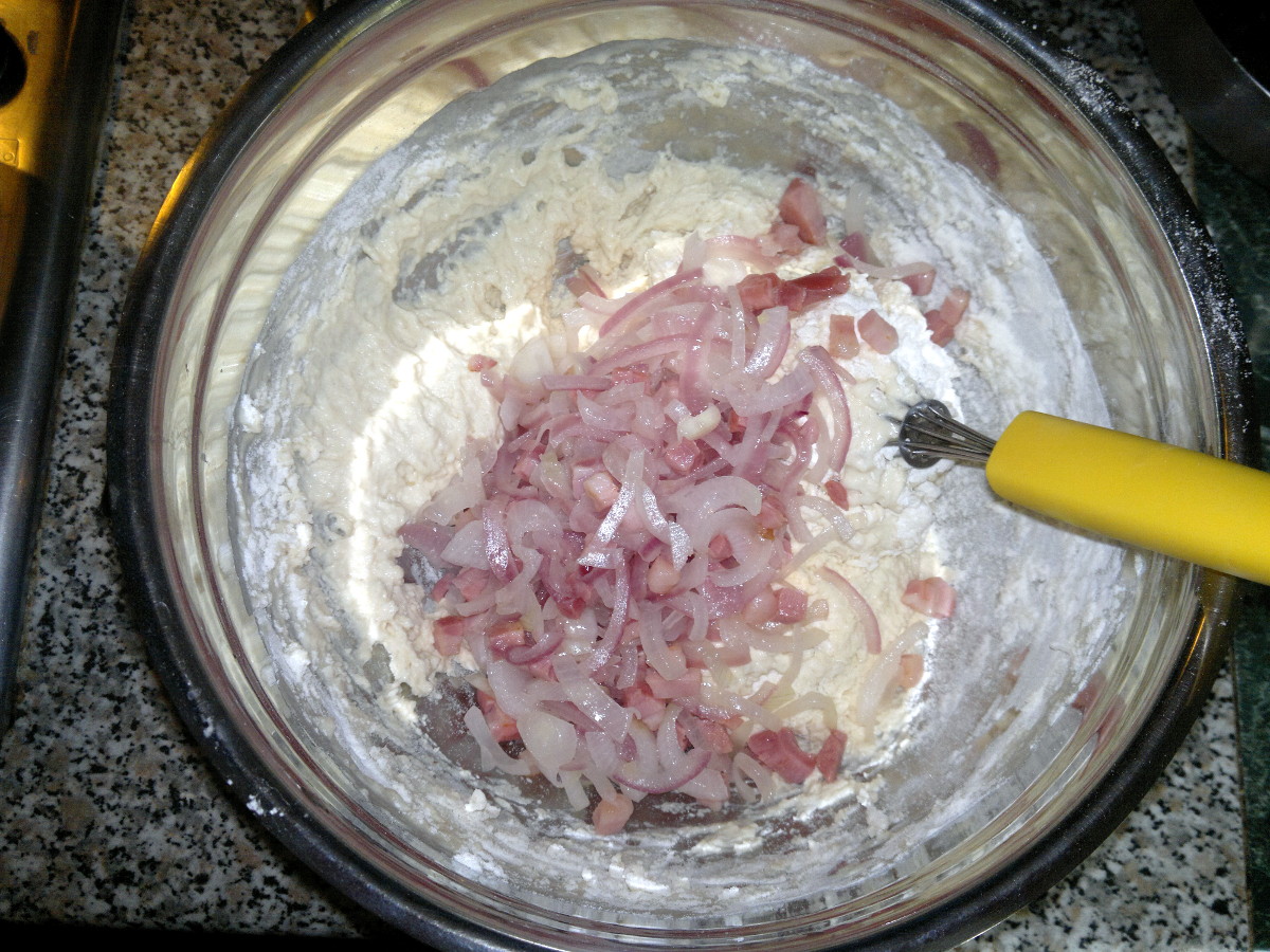 Ancora tiepido, insaporito dalla pancetta e dalle cipolle (ah! le cipolle!) e con l’inconfondile aroma della birra.