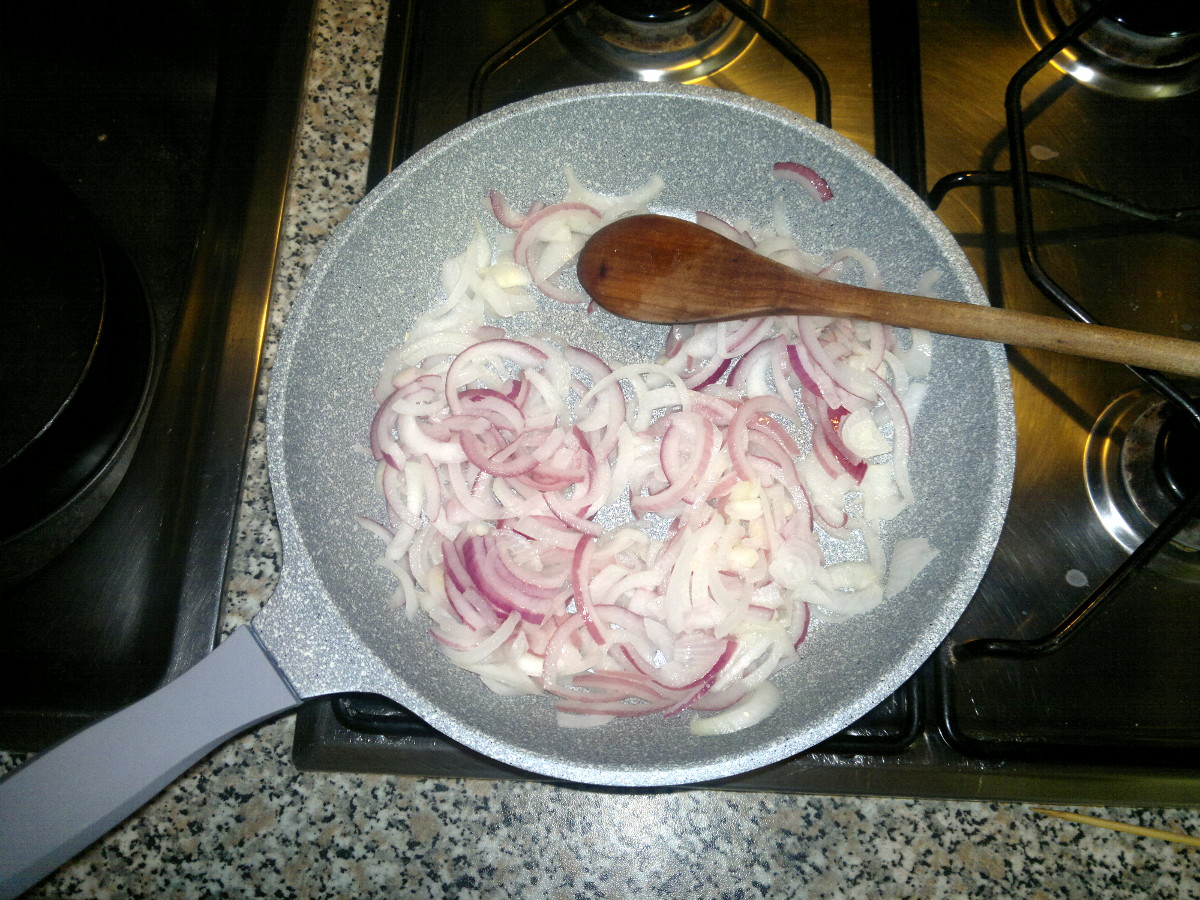 L’unica piccola modifica è stata quella di usare cipolle rosse e bianche invece che solamente bianche.