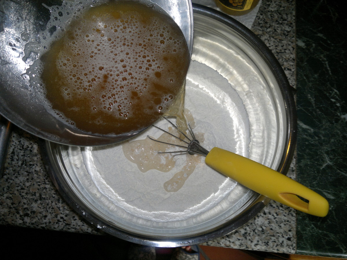 In another bowl mix the beer with honey and malt, stirring for some time with a wooden spoon.