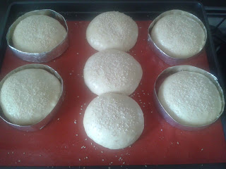 Form buns as you can see here and put them in foil rings (you can make them in this way ) until they