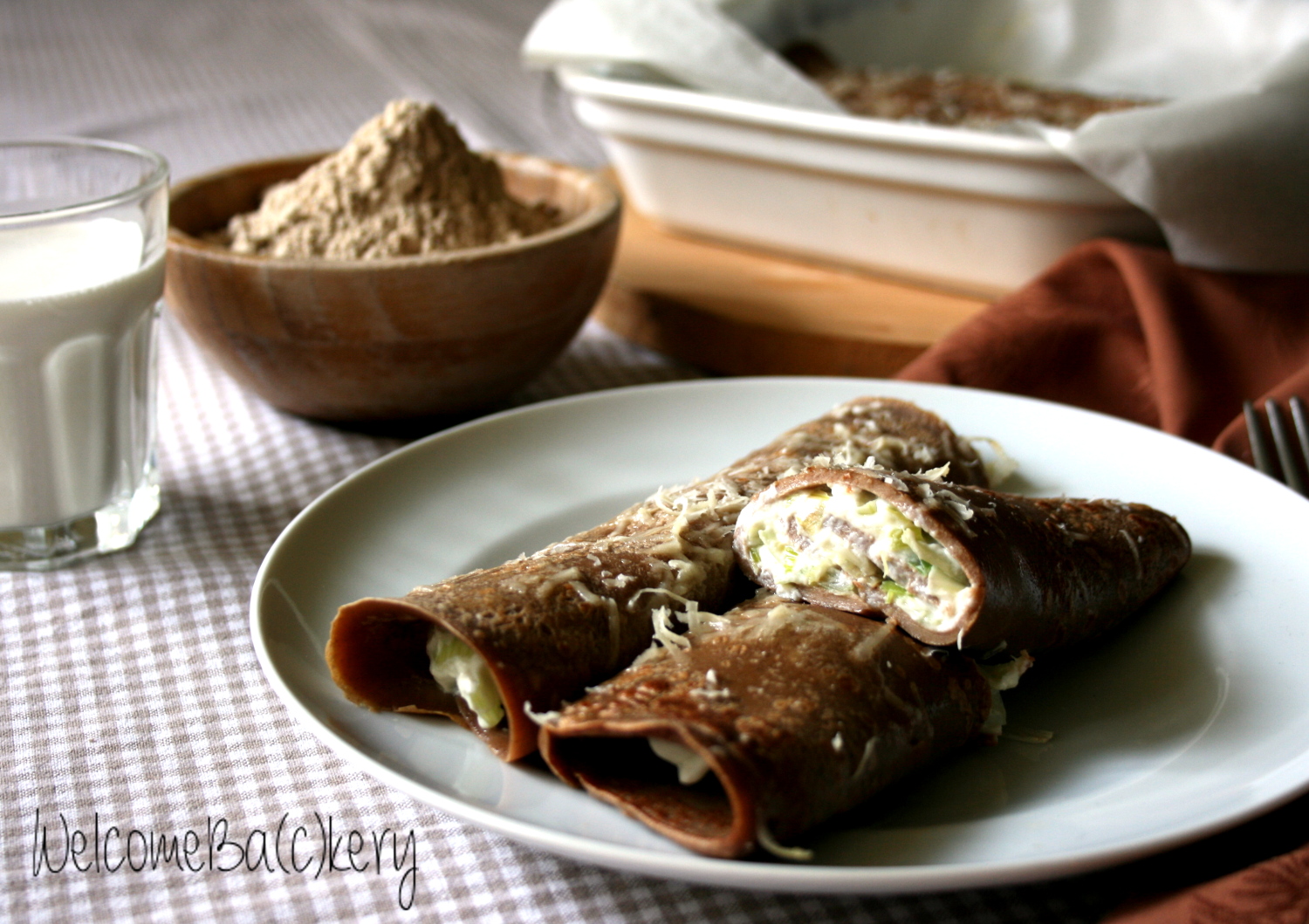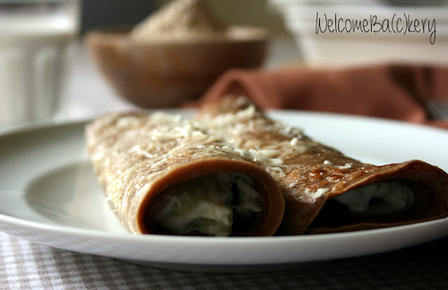 Chestnut crepes with ricotta and leeks