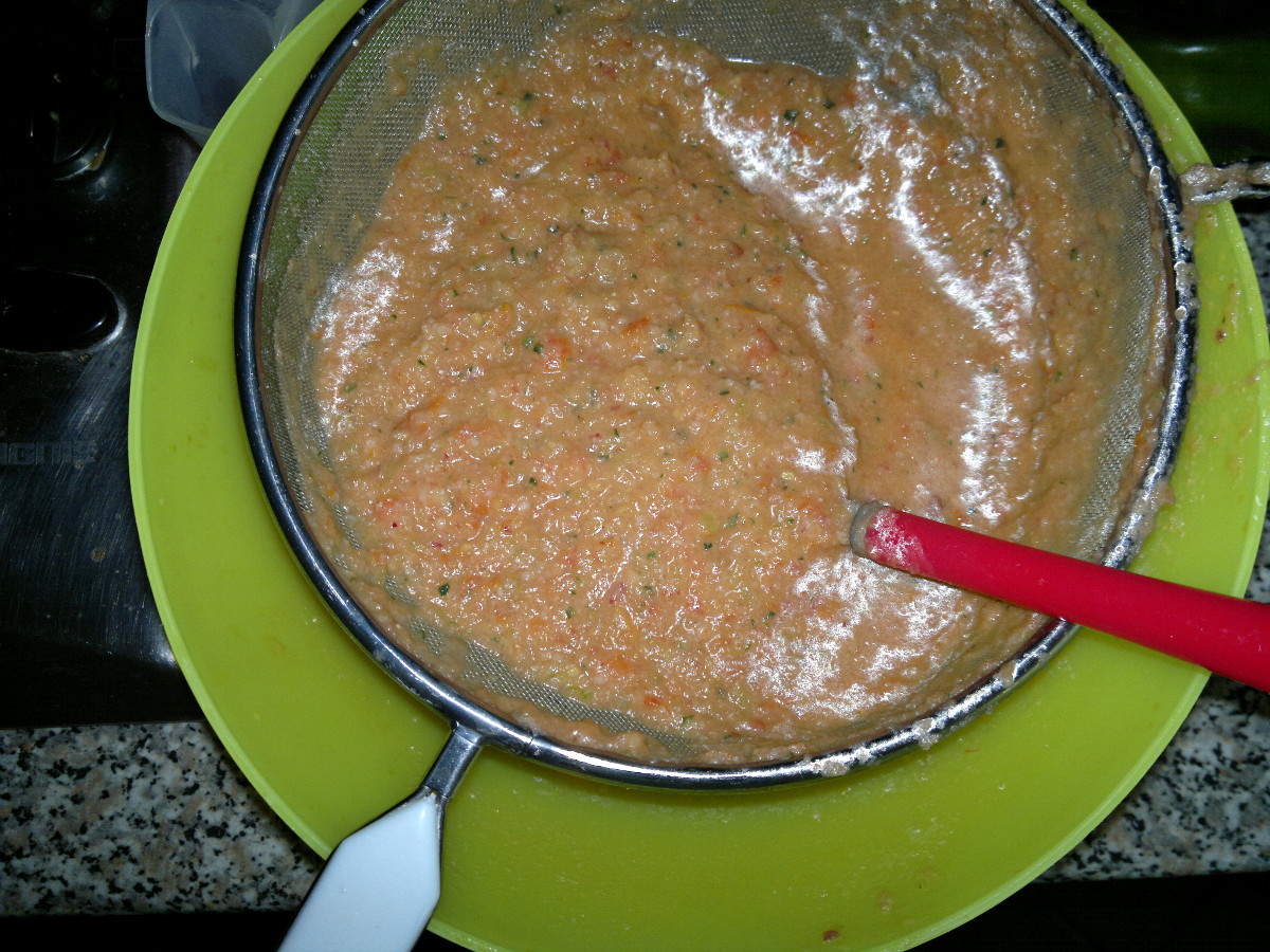 Pass all through a sieve and put in the fridge again for 30 minutes (I add a couple of spoons of the thing remain in the sieve, to obtain a thicker gazpacho).
