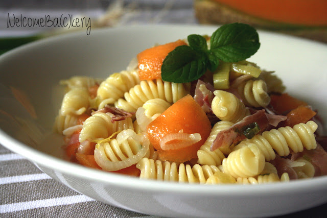 Insalata di pasta con melone, speck e cipollotti
