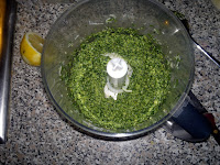 Unite i pinoli tostati, il succo di mezzo limone, l’aglio, il grana e l’olio. Frullate il tutto fino a d ottenere un composto omogeneo.