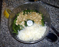Clean and wash spinach and put them in a mixer. Add Parmesan, garlic, pine nuts, the juice of half lemon and oil. Mix until uniform.