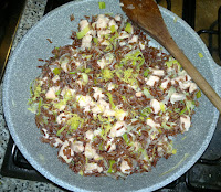 Red rice with leek, salmon and lemon