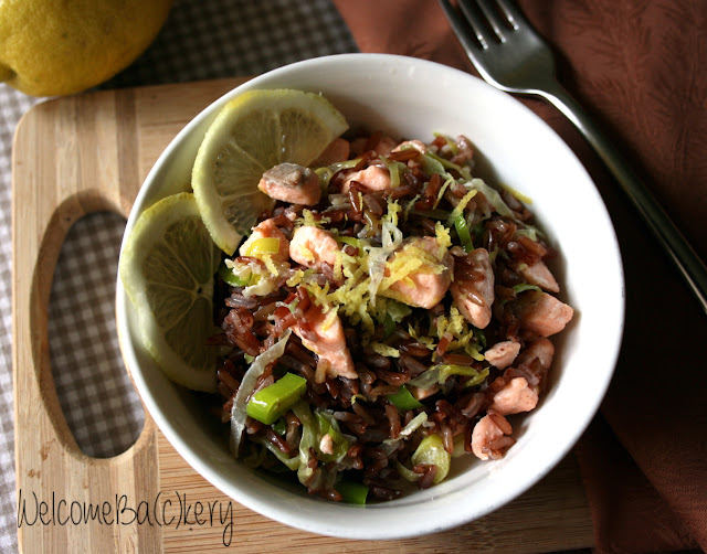 Riso rosso integrale, porri, salmone e limone. Li amo tutti moltissimo ed assaporarli in una sola forchettata è stato davvero delizioso ed appagante!