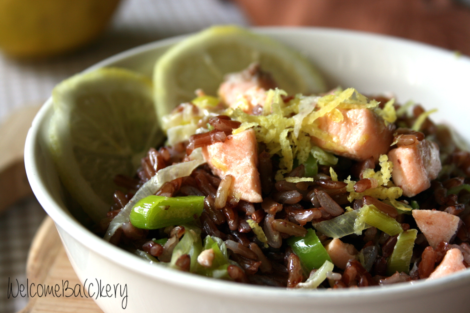 Home / primi piatti / Riso rosso con porri, salmone e limone