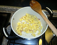 Aggiungete la patata ridotta a cubetti e fatela rosolare qualche minuto,