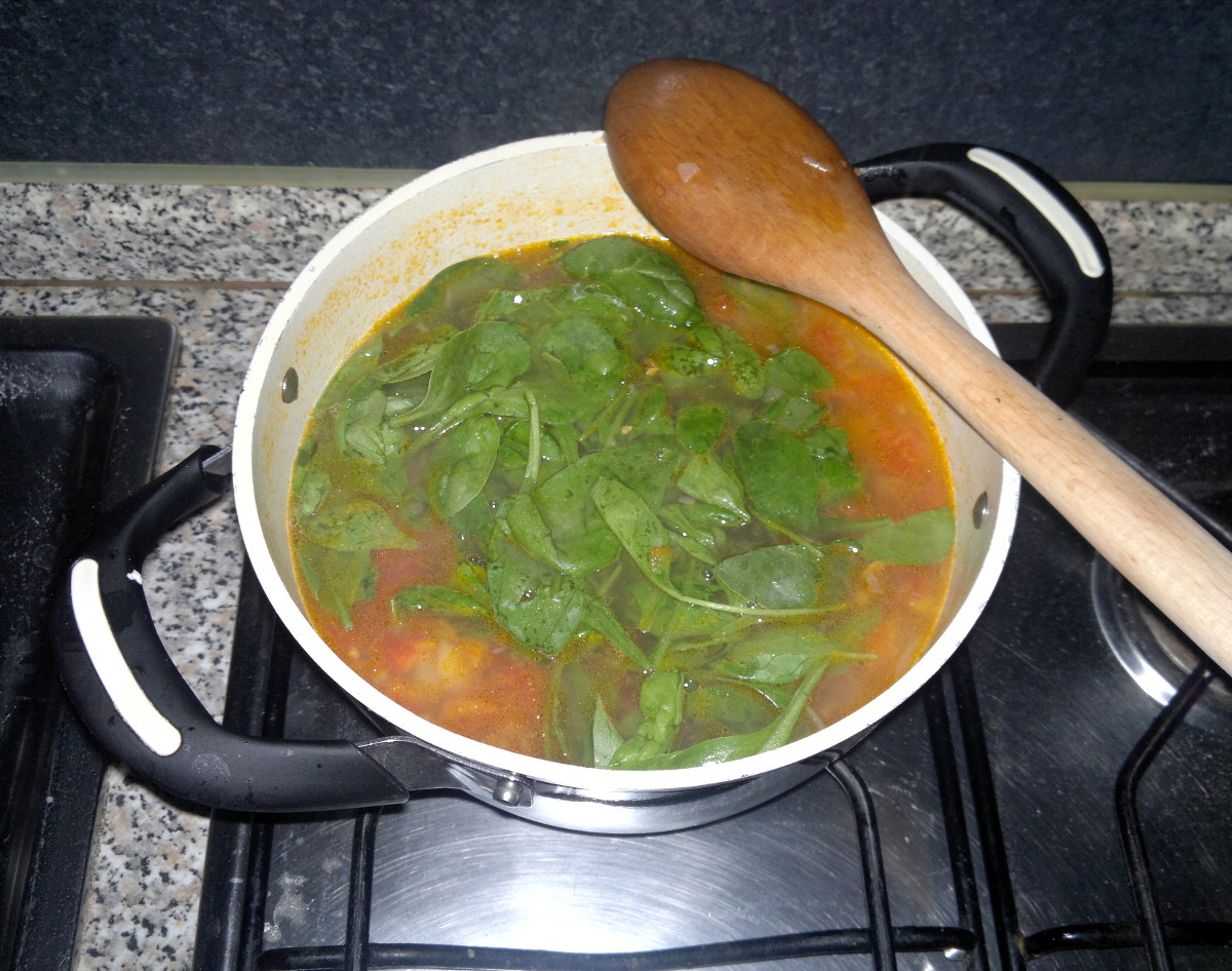 A few time before the soup is done add the spinach. Adjust in salt and pepper and let rest for about 1 hour. Serve hot.
