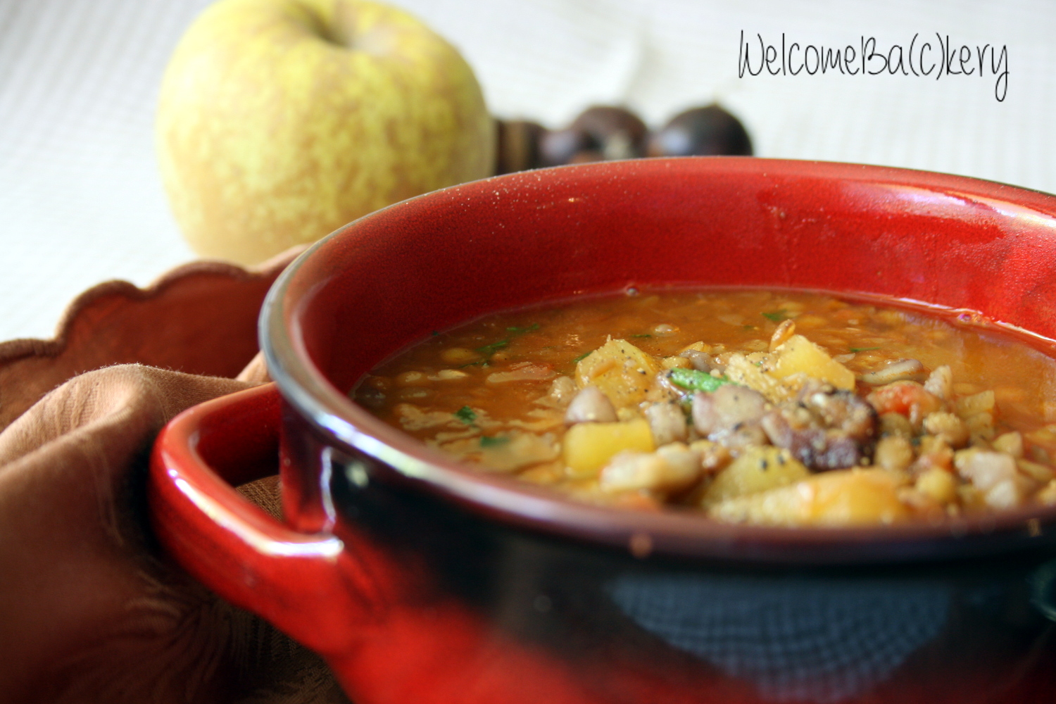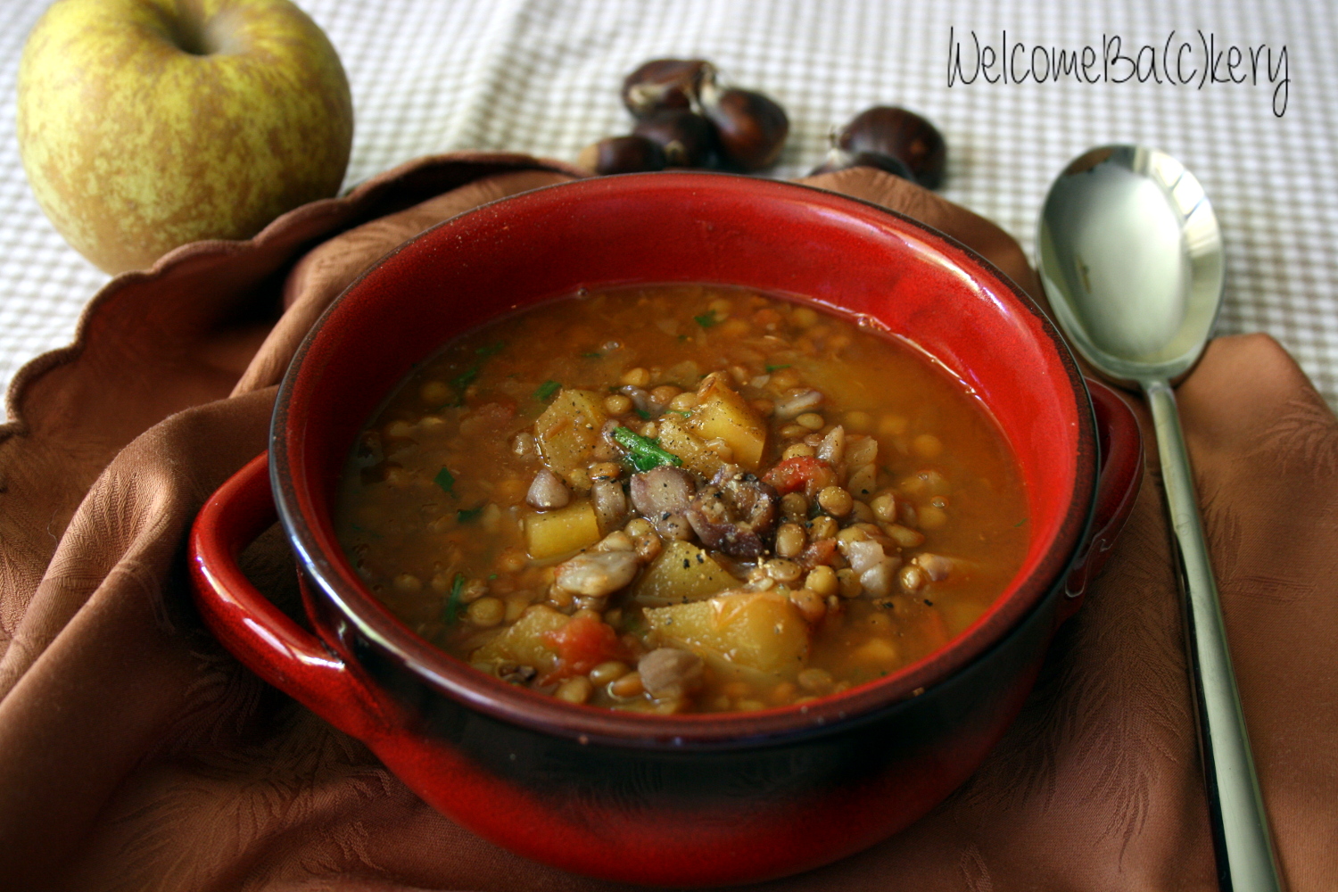 Zuppa di lenticchie, castagne e mele