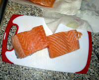 Eliminate la pelle dal pesce (viene via facilmente) e disponetelo in una pirofila foderata con carta forno.